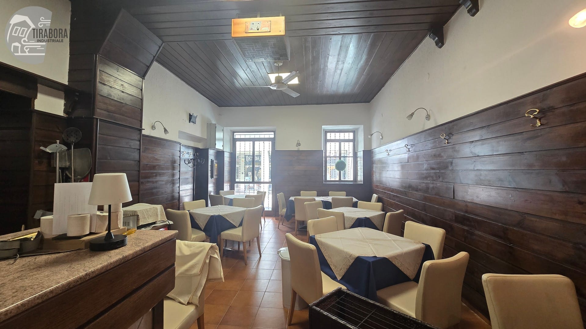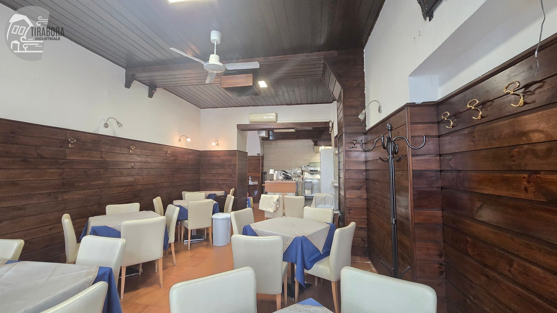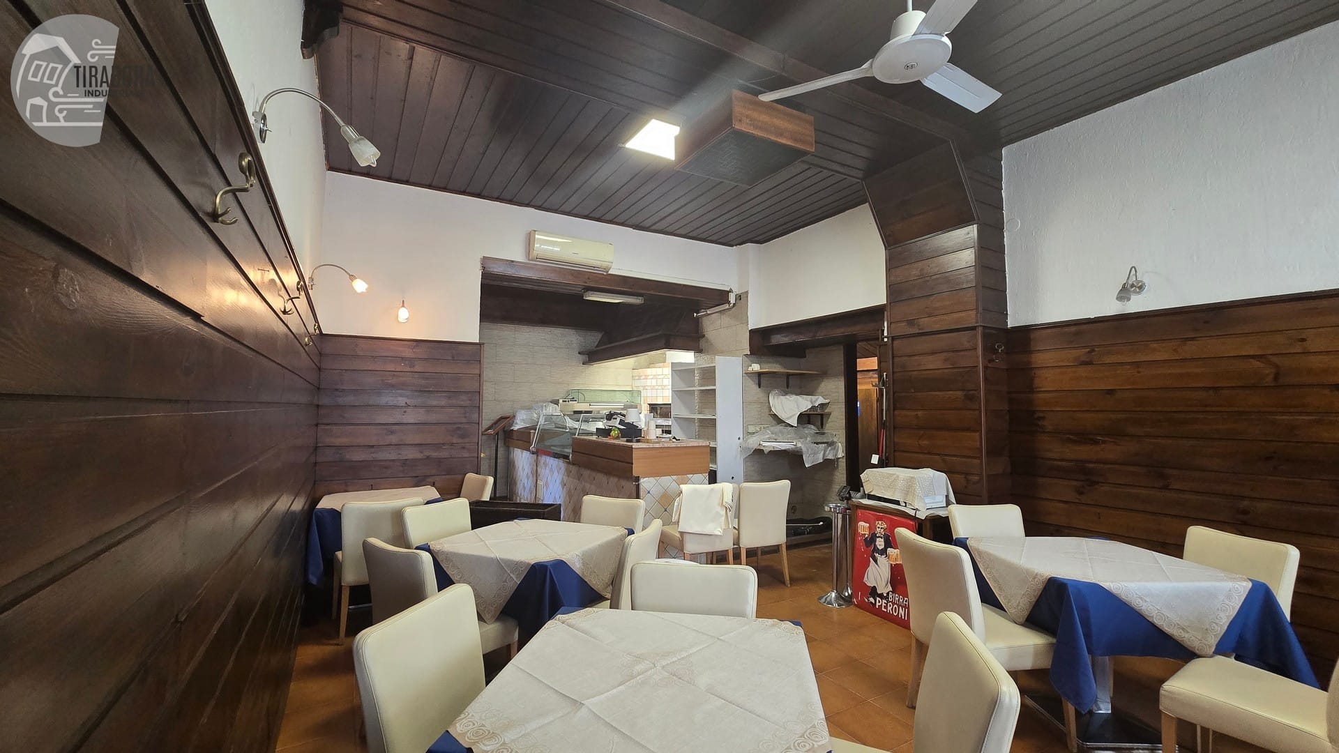 The internal area is approximately 75 sq m, well-distributed and functional for restaurant operations. The kitchen has been recently renovated in terms of both systems and furnishings, with new cooking equipment and furniture. There is also a compliant chimney flue in place.