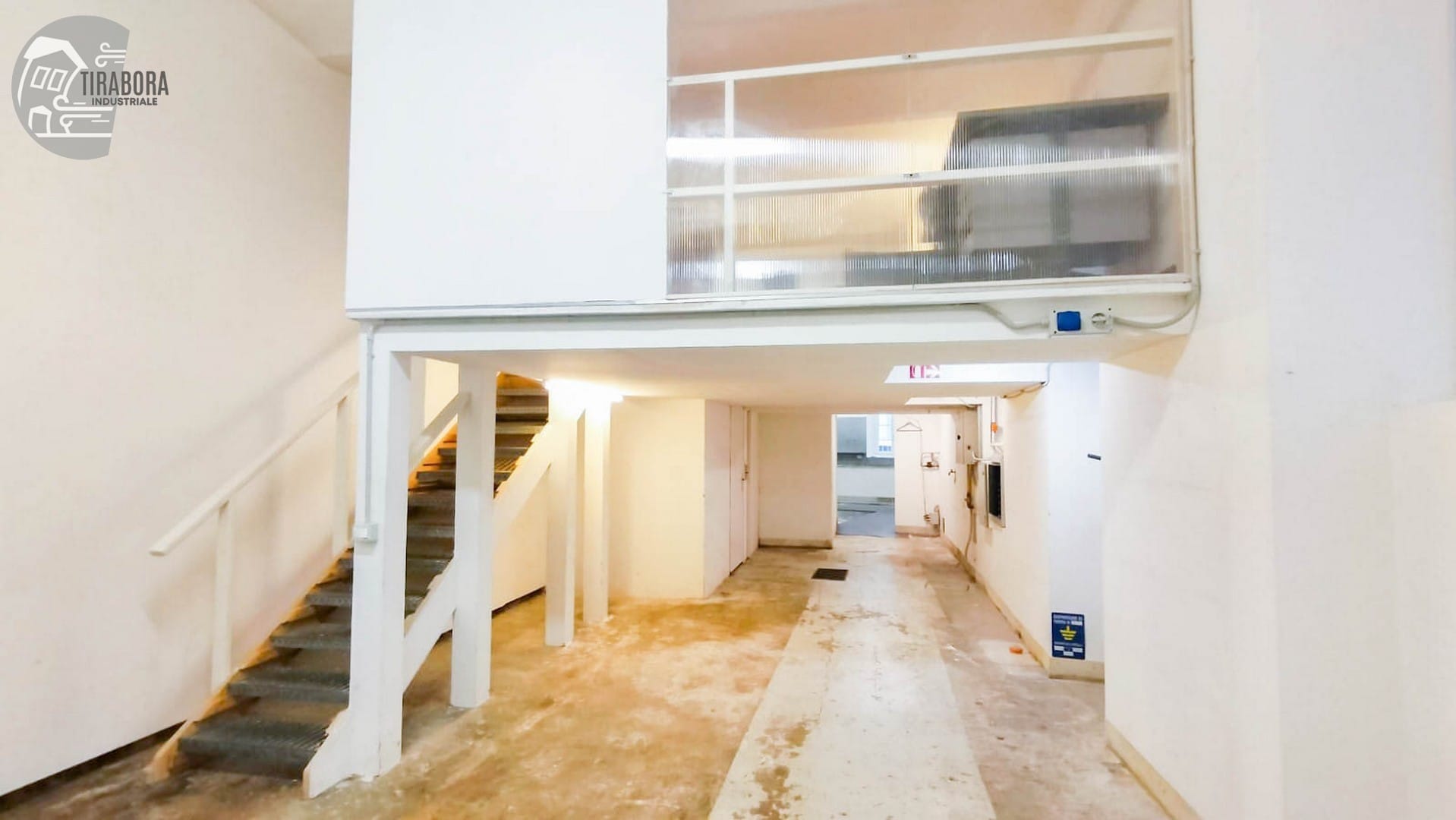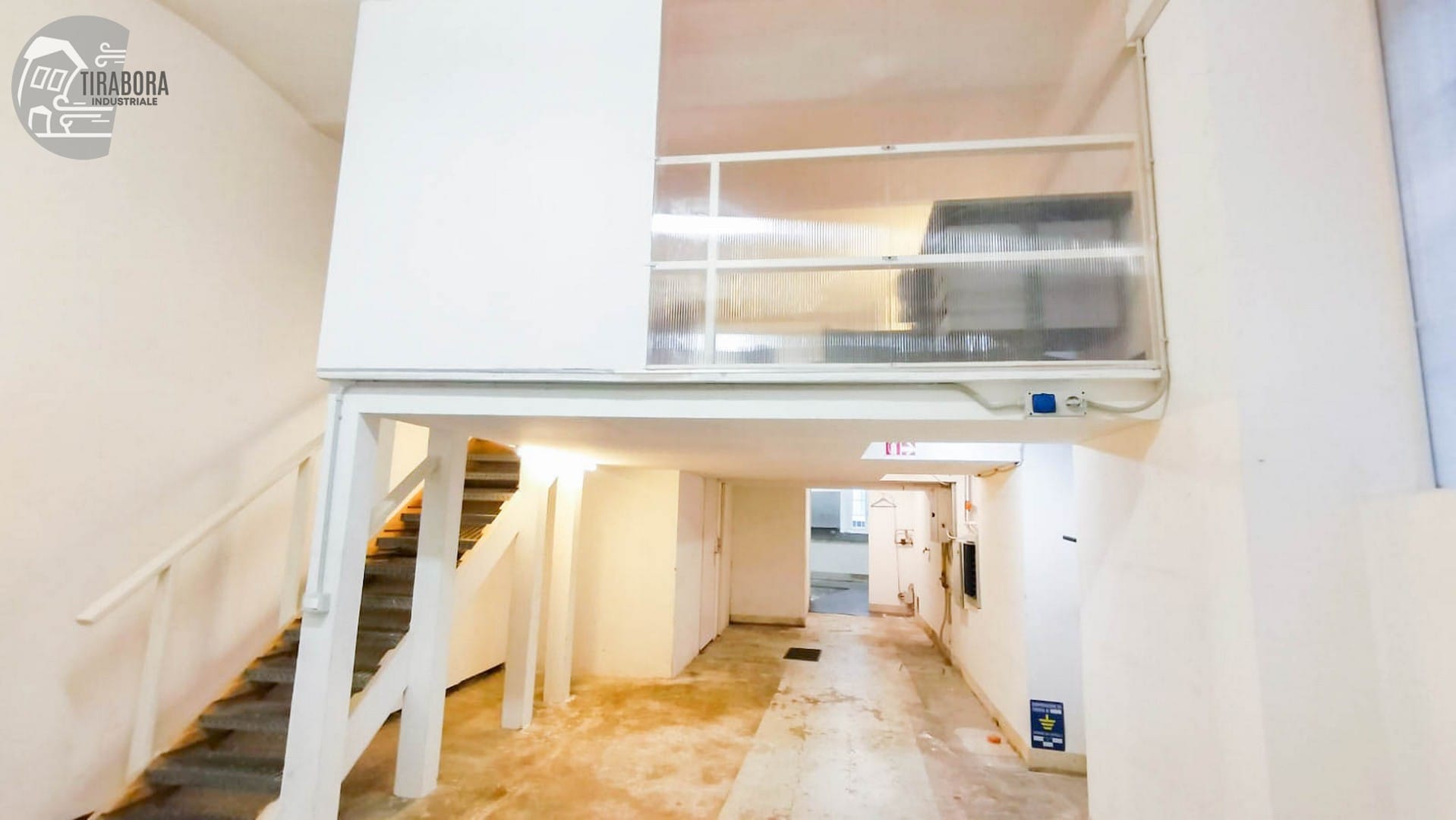 From the main room, you access the rear area, consisting of a second space suitable for warehouse or production activities. The property is completed by a mezzanine area, currently equipped as a refreshment area for staff.